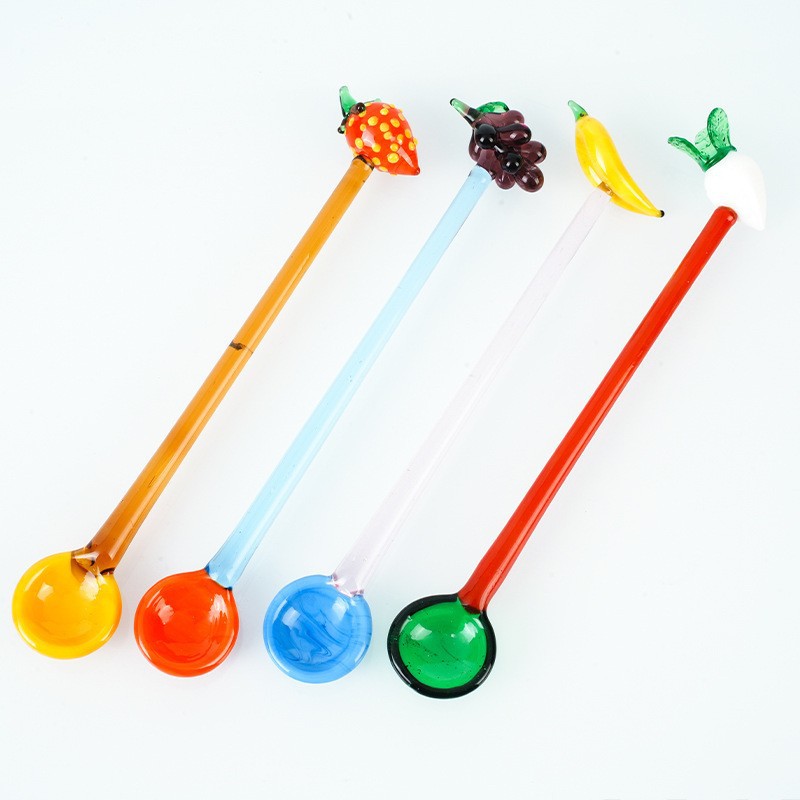 Sendok Kaca Gagang Panjang Indah Kreatif Warna Kontras Makanan Penutup Transparan