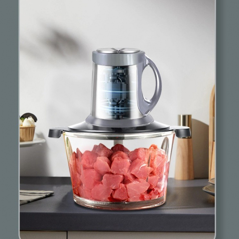 Mesin Penggiling Daging Jerman Mesin Penggiling Rumah Tangga Mangkuk Kaca Bawang Putih Mesin Pengumpan Daya Besar Multifungsi Rumah Tangga