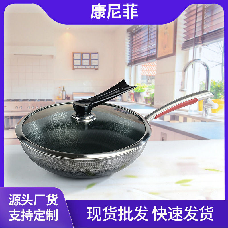 316 wajan baja tahan karat dua sisi sarang lebah tidak dilapisi wajan penggorengan rumah tangga multifungsi wajan anti lengket hadiah panci