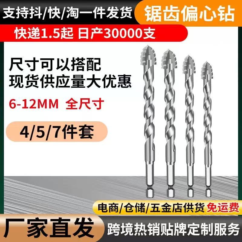 Nanwei Upgrade Super Keras Bergerigi Eksentrik Bor Tangan Bor Listrik Gagang Hexagon Bor Kaca Beton Empat Pisau Bor