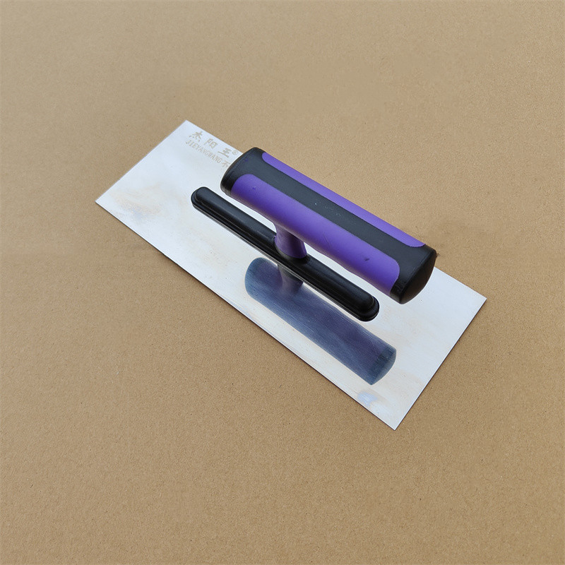 Papan plester spatula besar ujung runcing, alat pembuat ubin spatula tebal bentuk I baja mangan tiga lama daun pegangan plastik