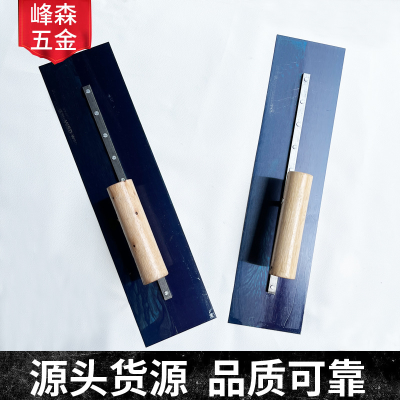 Yingde alat hias pisau dorong spatula, sekop lumpur 65 # baja mangan papan biru panggang pegangan kayu spatula perlengkapan lintas batas