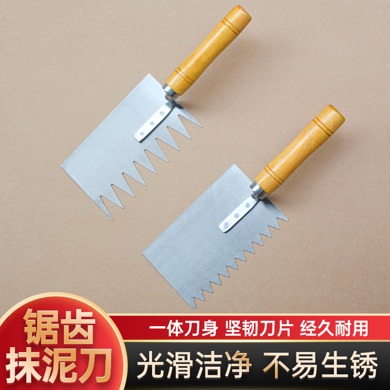 Sendok abu bergigi baja mangan pisau abu pelat besi kecil pisau sekop bergigi pisau bata alat peletak ubin pelat lumpur kecil
