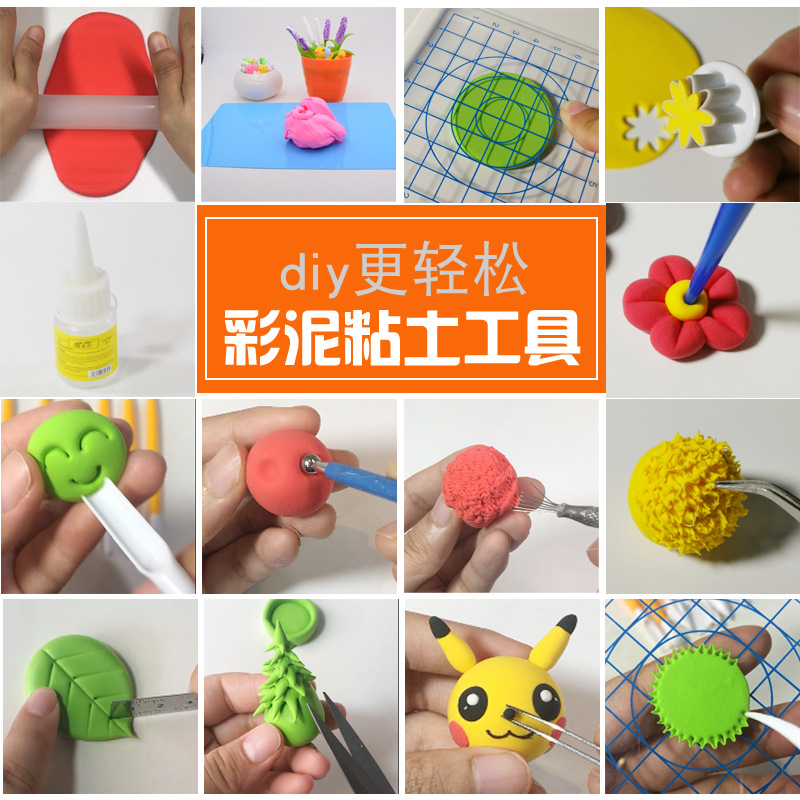 Aksesori Alat tanah liat berwarna papan penekan lumpur tujuh jarum pinset lem stik pil taman kanak-kanak pekerjaan manual DIY