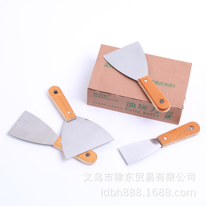 Pasokan pabrik pisau dempul pegangan kayu pisau pembersih sekop kecil pengikis Dinding menyapu dempul dalam stok pisau dempul pegangan kayu pisau dempul