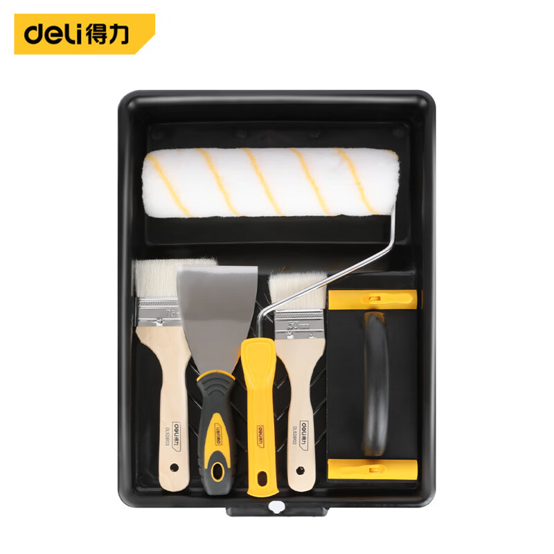 Deli alat sikat 6 potong wol sikat rol sikat dempul pisau amplas pemegang setelan DL528 006