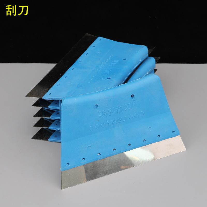 Pengikis dempul plastik biru dua lapisan pisau pengeruk lantai dinding pengikis dempul baja tahan karat putih grosir