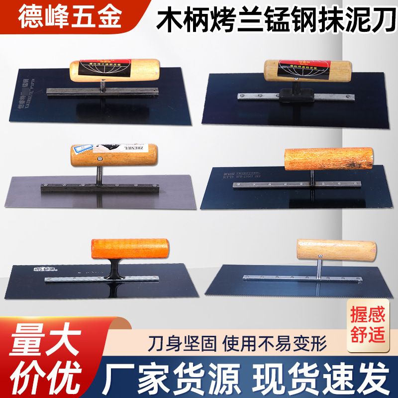 Gagang kayu memanggang bebas kuku biru sekop 45 # baja multifungsi pisau dempul seperti porselen tanah liat pengikis sekop datar grosir