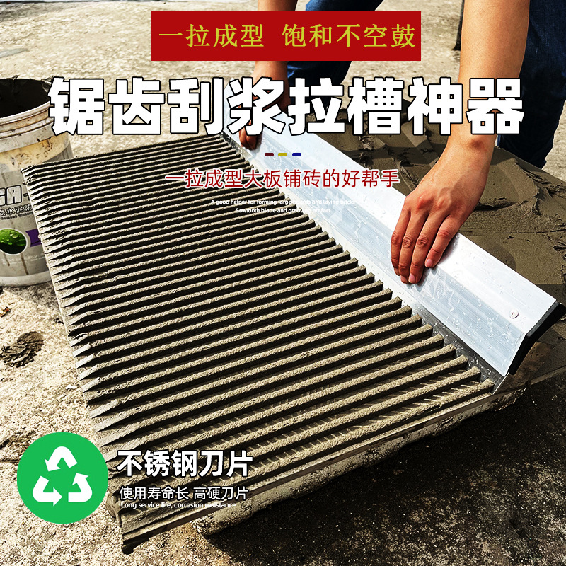 SK5 spatula bergerigi baja tahan karat, pisau plester bergerigi spatula batu ubin abu-abu