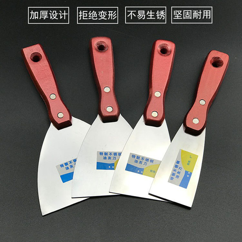 Pasokan langsung pabrik grosir pisau dempul pegangan kayu merah pisau stainless steel menebal dempul sekop pisau batch pisau membersihkan dinding