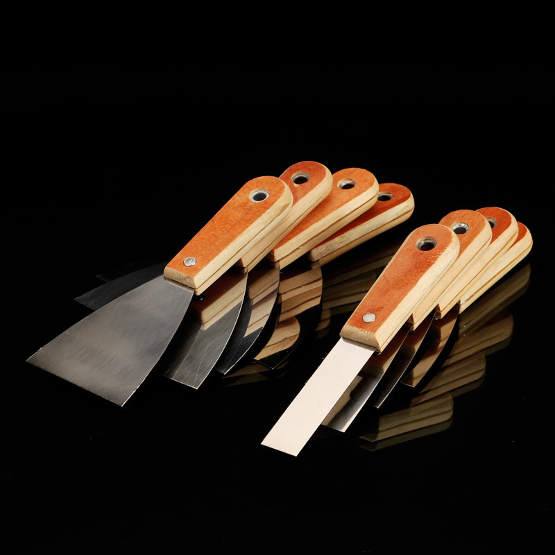 Grosir Pabrik pisau dempul pegangan kayu klip ganda sekop pembersih baja tahan karat pengikis pisau dempul dipertebal sekop pengisi