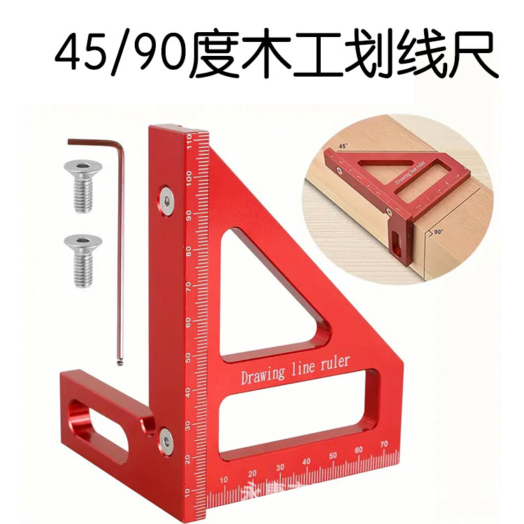 Penggaris pertukangan 3D Penggaris Multifungsi Penggaris Segitiga Paduan Aluminium Penggaris Sudut 45 Derajat 90 Derajat Alat Penggaris