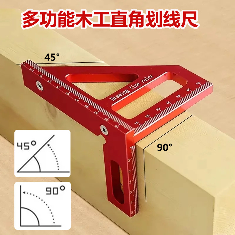 Pabrik Langsung Multifungsi 45/90 Derajat Penggaris Sudut Lurus Kayu Alat Pengukur Sudut Paduan Aluminium 3D