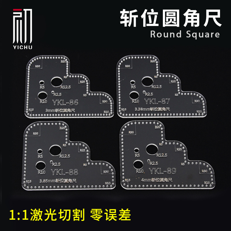 Penggaris sudut bulat tipe akrilik, penggaris perhitungan posisi pemotongan R pengaturan 4 jenis jarak