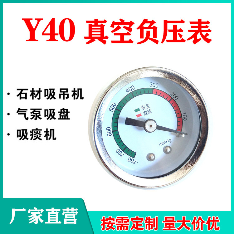 Y40 pengukur vakum negatif, alat ukur tekanan negatif, penyedot ubin kaca, perangkat angkat tahan lama, anti guncangan, ditambah peredam