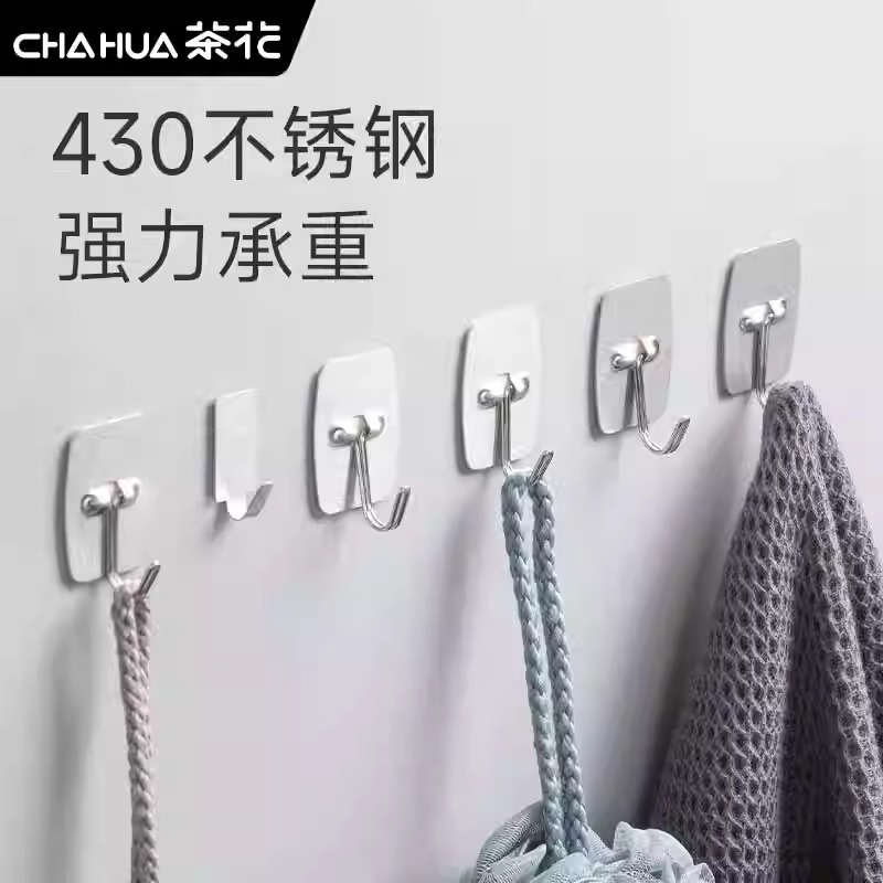 Kait lengket baja tahan karat Camellia kait ubin dinding kaca perekat kuat kait bebas lubang dapur dan kait handuk kamar mandi
