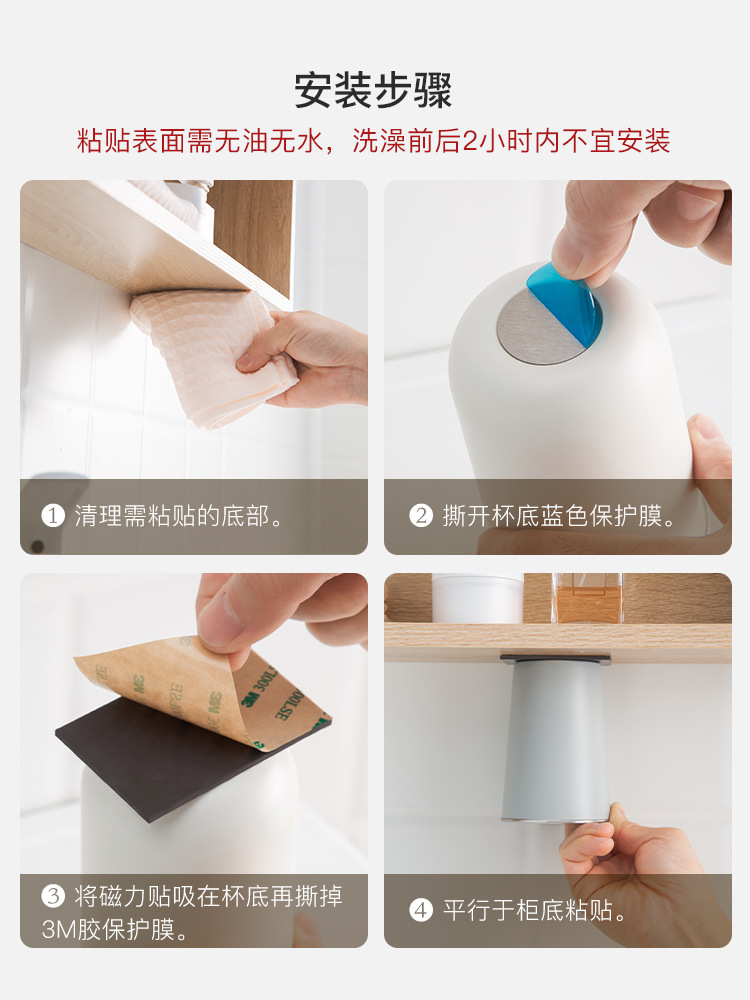 KBQ1 cangkir sikat gigi tempel dinding, lemari cermin bawah penyedot magnetik cuci mulut gesper terbalik cangkir sikat gigi terpasang di dinding