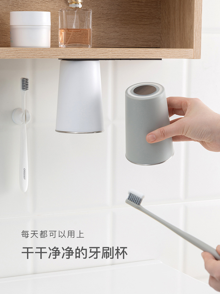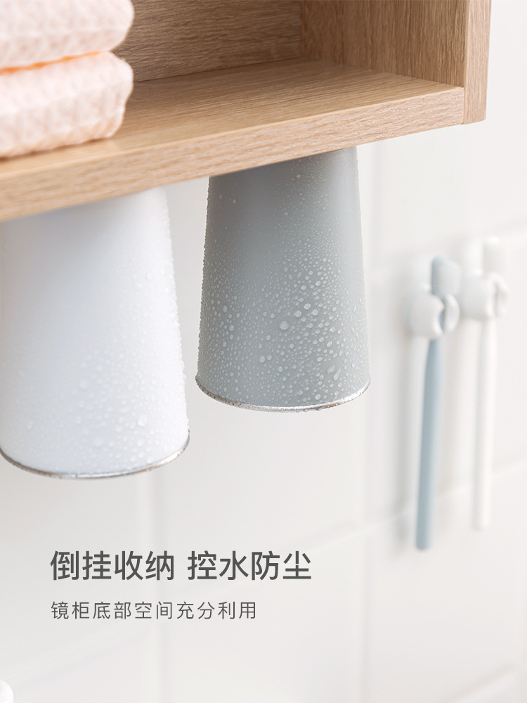 70YF cangkir sikat gigi tempel dinding, lemari cermin bawah penyedot magnetik cuci mulut gesper terbalik cangkir pengeringan sikat gigi terpasang di dinding