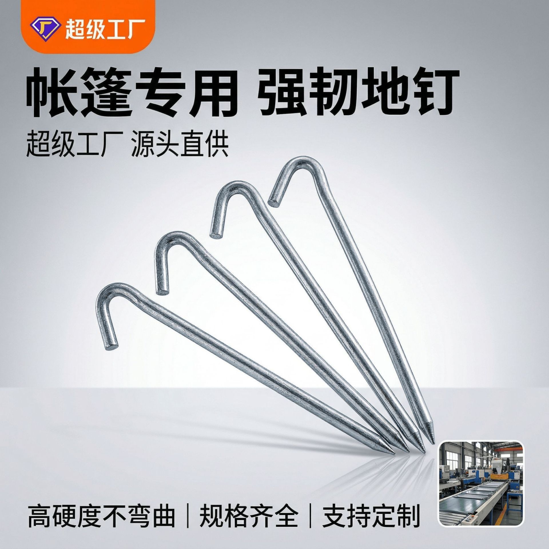 Tenda Kemah luar ruangan, tenda kanopi rumput tanah tanda lancip setengah lingkaran tenda besi busur kuku tanah