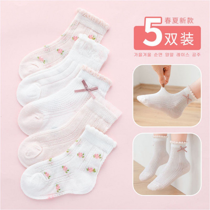 Kaus kaki anak perempuan musim semi dan panas tipis anak-anak kaus kaki bayi katun musim panas tengah dan besar kaus kaki jala renda putri anak-anak