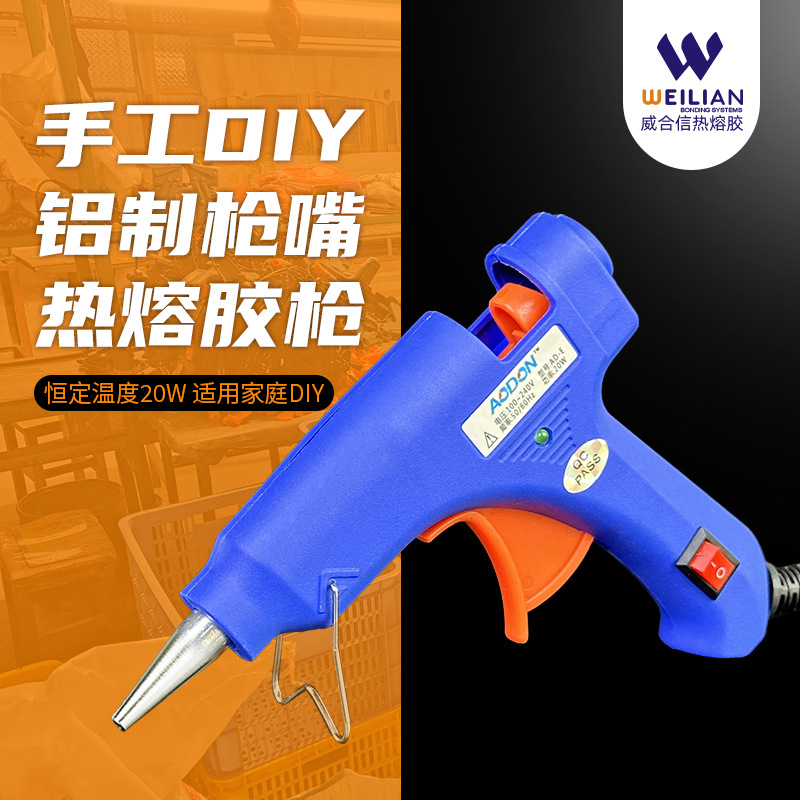 Pabrik langsung memasok 20w lem meleleh panas DIY pistol lem kecil buatan tangan 7mm pistol meleleh panas standar Amerika