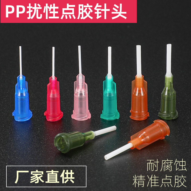 Jarum dispenser lem plastik, nozel jarum sekrup sadel, fleksibel PP, jarum lem penuh, 13mm, nozel jarum lem industri datar
