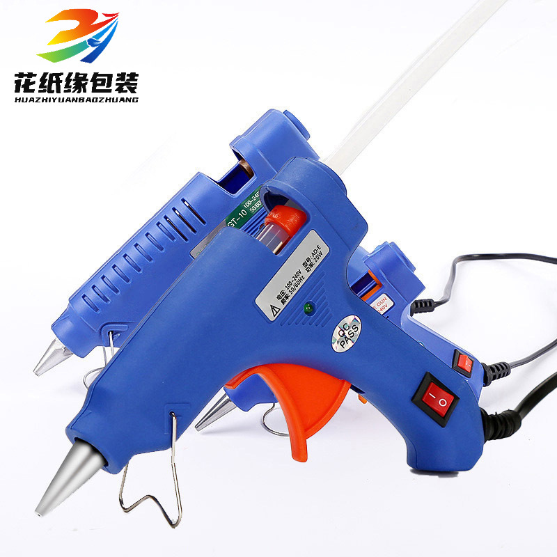 Pistol lem tembak elektrik 20W, lem tembak listrik dengan braket lampu indikator saklar, pistol lem biru diameter 7mm, grosir mesin pistol lem