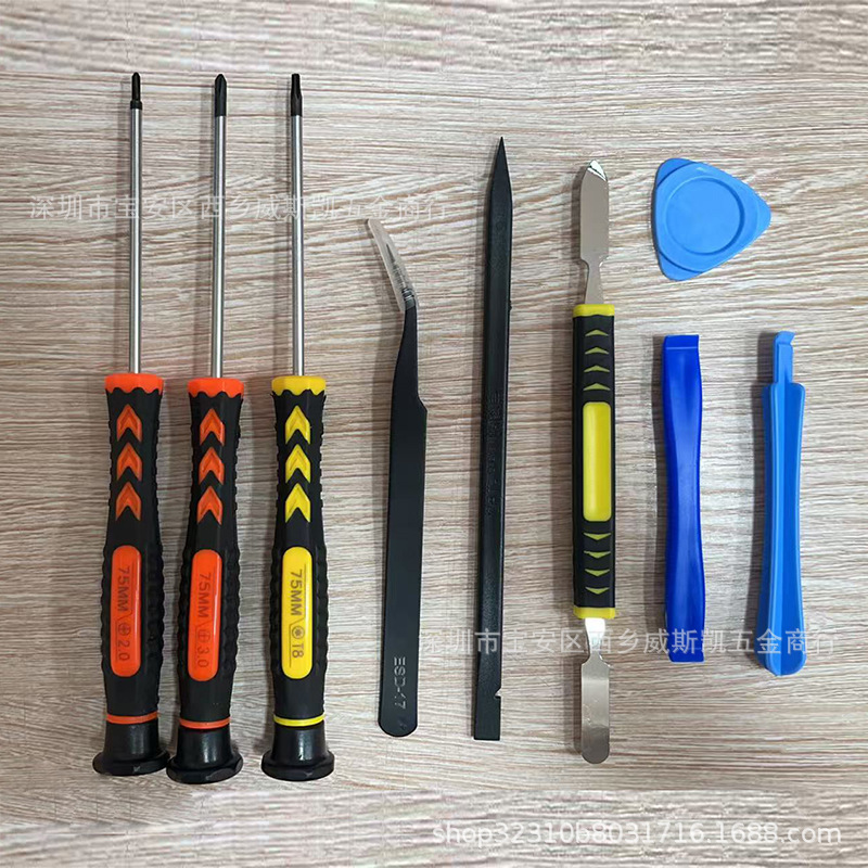 Set peralatan pembongkaran 9 buah alat perbaikan telekomunikasi Android Apple 9-in-1 setelan kombinasi obeng hitam kecil