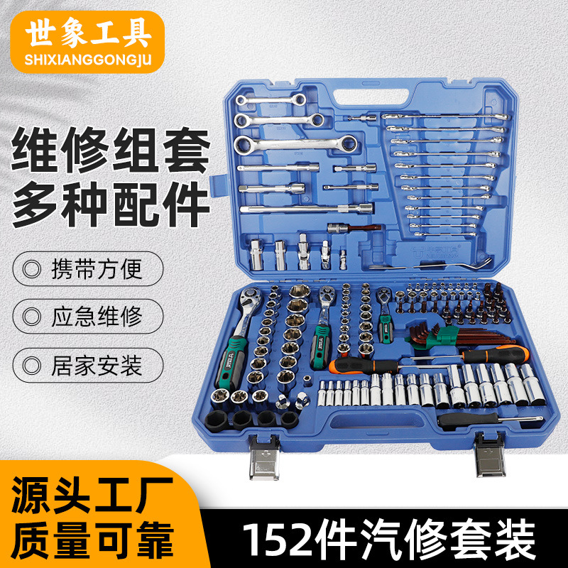 Set kunci soket ratchet multifungsi 152 buah, set alat perbaikan mobil, kotak alat lengkap untuk perbaikan mobil profesional dan penggunaan rumah tangga