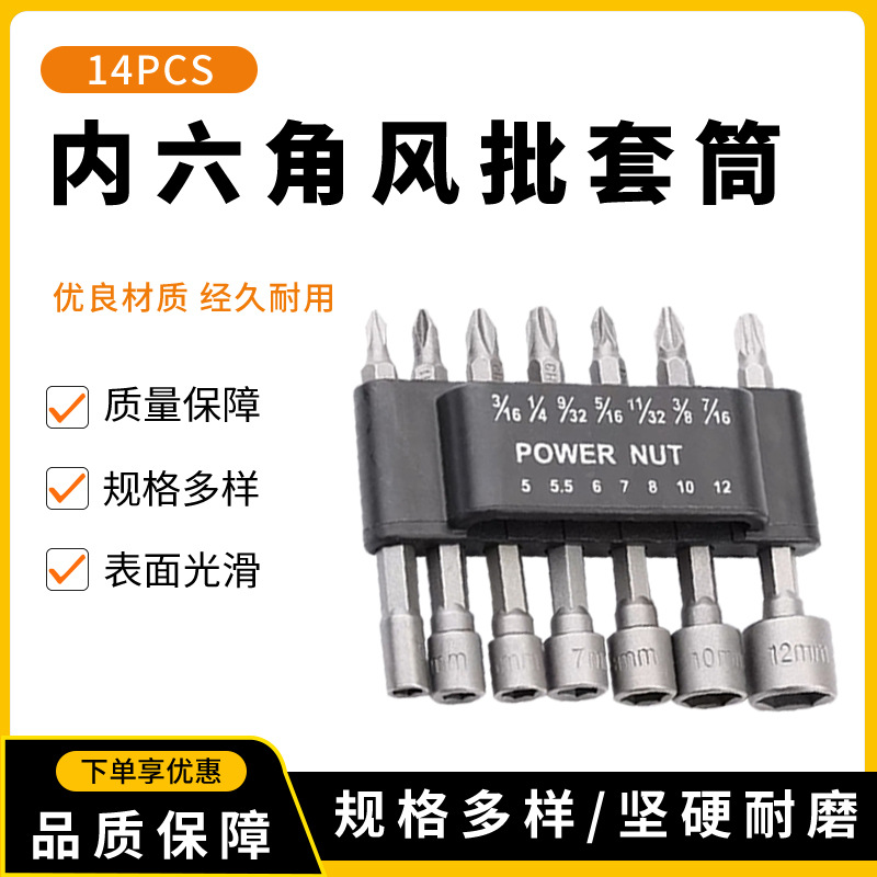Obeng listrik multifungsi, 14pc alat kombinasi obeng listrik pegangan heksagonal, obeng angin pneumatik pullover
