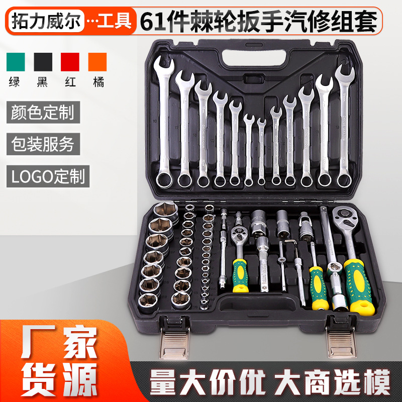 61件棘轮扳手汽修组套 厂家修车套筒套装 棘轮扳手组合 套筒工具