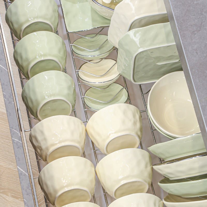 Setelan krim piring mangkuk, peralatan makan keramik merah jaring kecil segar kombinasi mangkuk dan sumpit bergaya krim