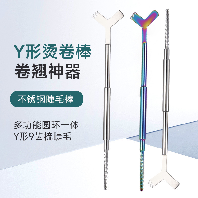 Alat Bantu Pelat Bulu Mata Panas Sisir Bulu Mata Palsu Sisir Bulu Mata Tipe Y Sikat Pencangkokan Bulu Mata Stainless Steel 3 in 1