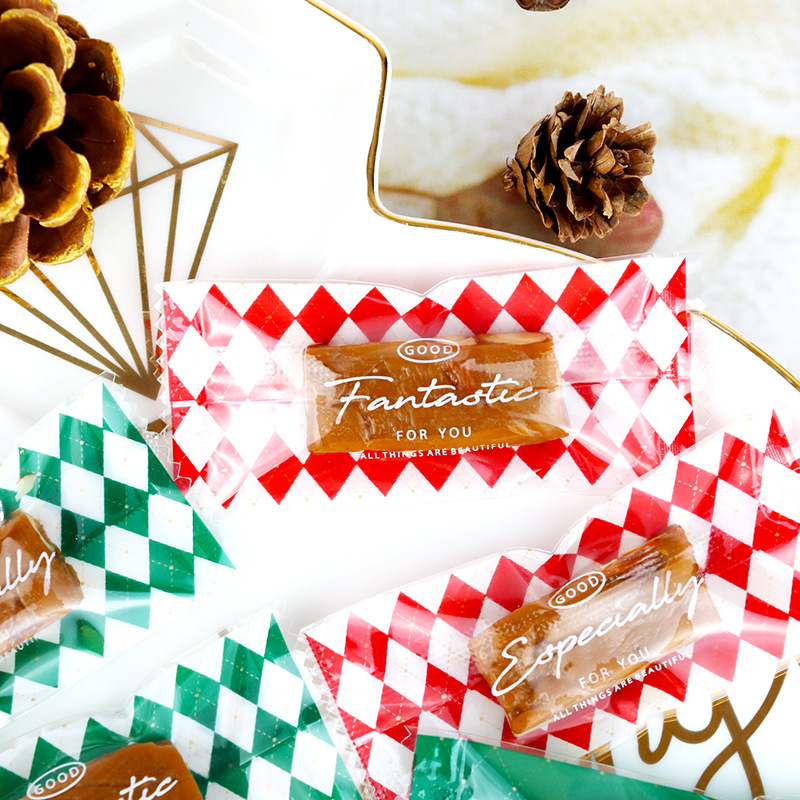 Tas kemasan permen natal asli nougat tas toffee tas segel mesin lucu kemasan makanan kue
