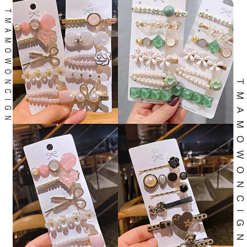 山茶花爱心花朵羽毛发夹6件套剪刀珍珠合金发卡一字夹碎发鸭嘴夹