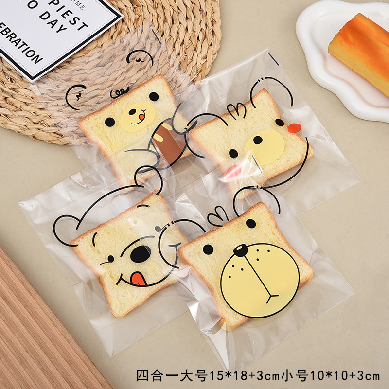 Kantung kemasan segel sendiri, kantong makanan transparan pola kartun lucu, kantong kue biskuit, kantong berperekat