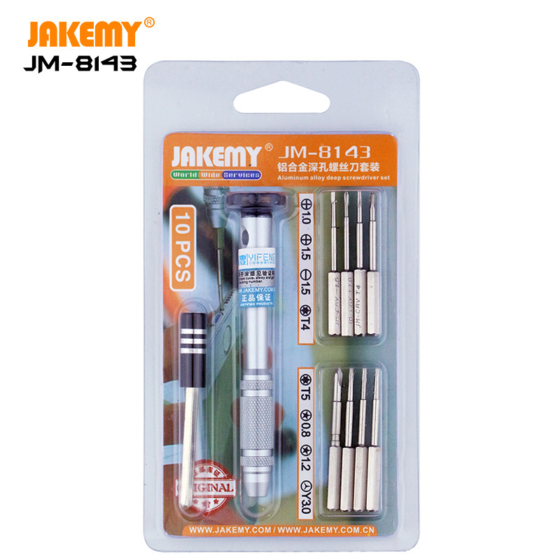 JM-8143 grosir 10 buah obeng setelan lubang dalam obeng anti-selip kombinasi S2 set Obeng heksagonal silang
