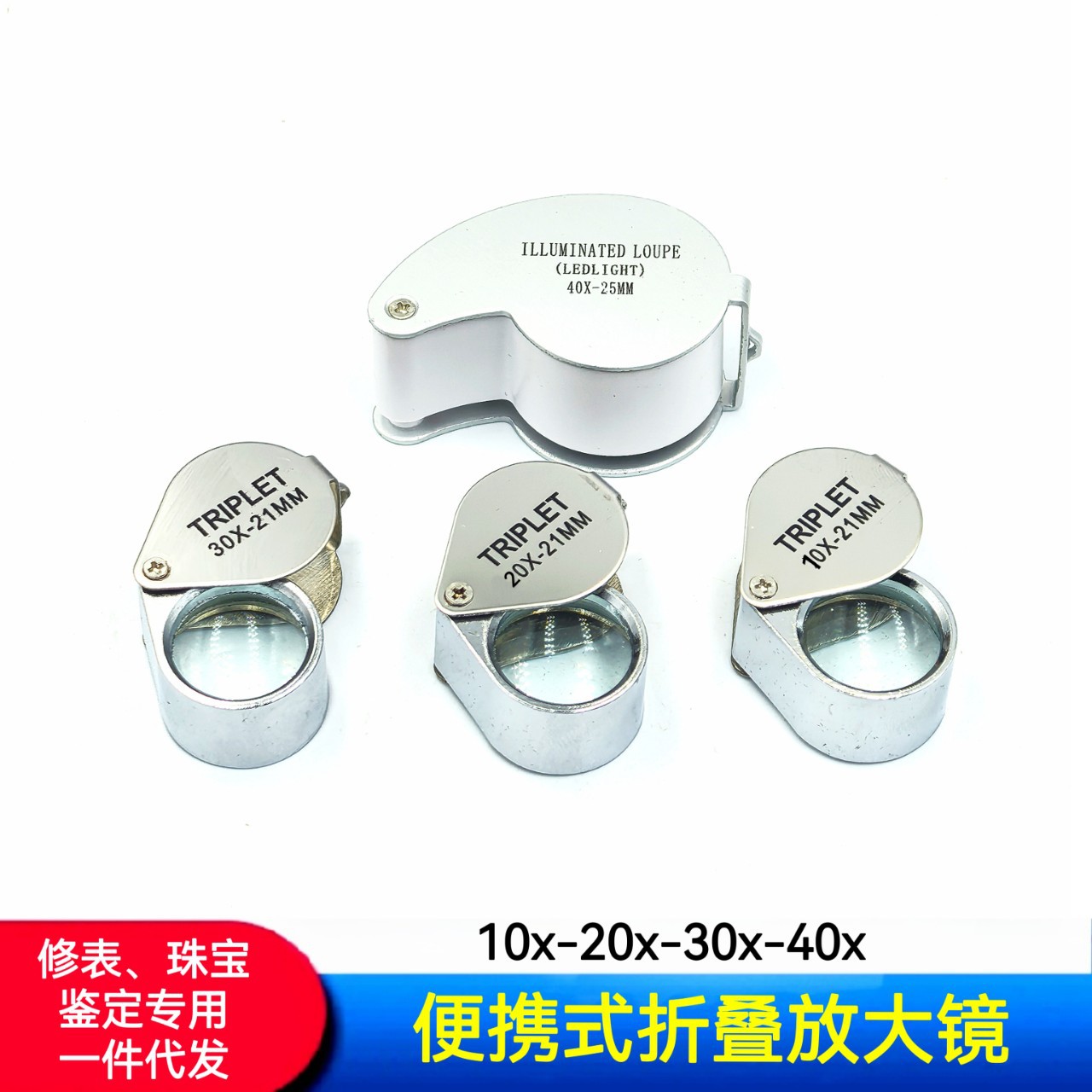 Alat Perbaikan Jam Tangan Kaca Pembesar Lipat Portabel Kaca Pembesar Identifikasi Perhiasan 10x-20x-30x-40x
