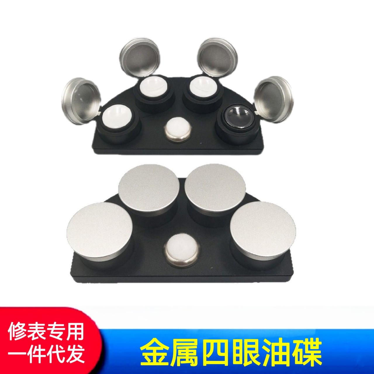 Alat reparasi jam tangan, alat perbaikan/piringan minyak Empat Mata/cakram minyak logam + pena minyak/pena minyak