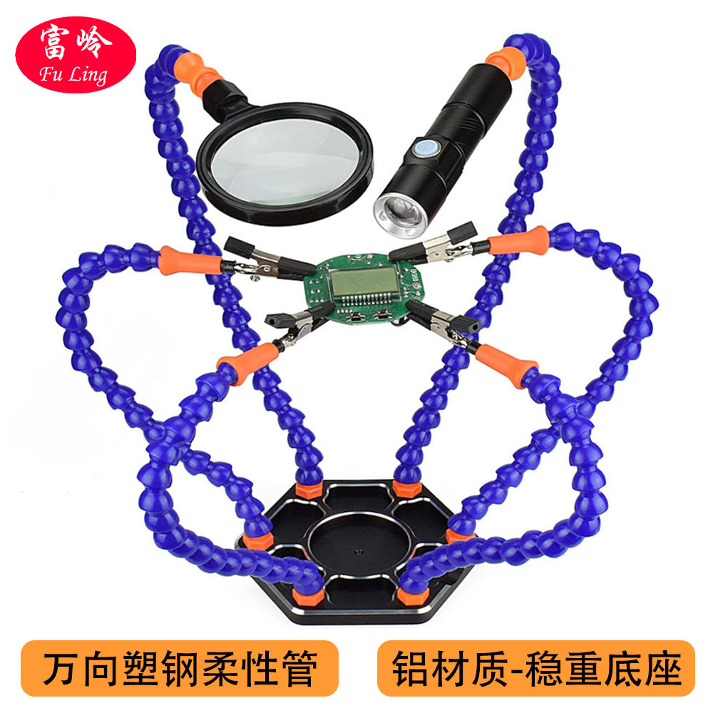 Perlengkapan pengelasan penjepit dua cakar dua arah, lengan pipa fleksibel universal logam, klip buaya, alat bantu DIY untuk elektronik.