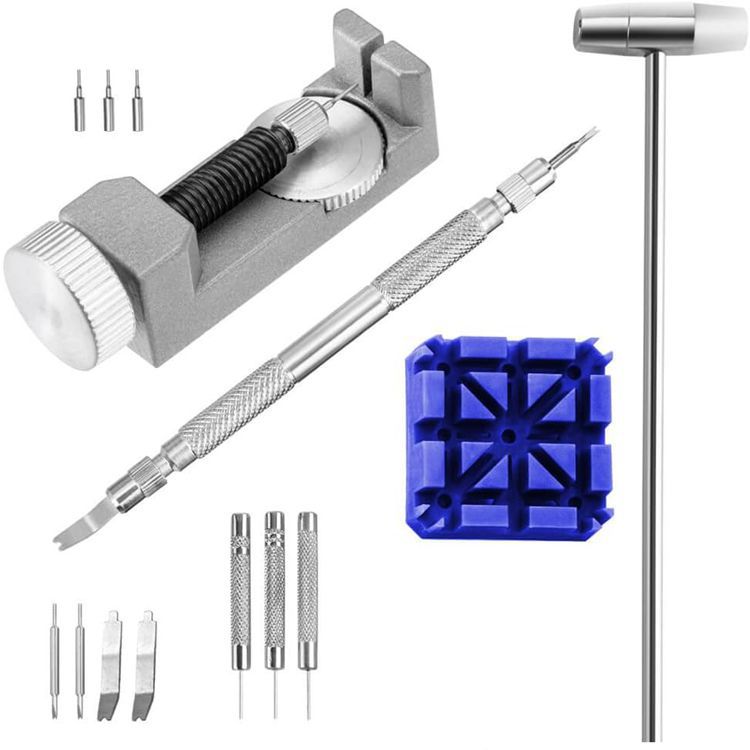 Alat perbaikan jam tangan 14 bagian set pembongkaran dan pengganti gelang jam kombinasi setelan kotak Telinga sabuk pelepas gelang jam alat pengganti pengaturan