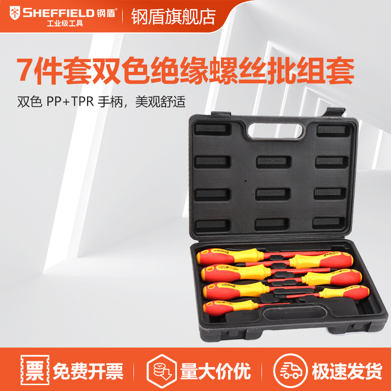 SHEFFIELD/perisai baja S057002 set Obeng Obeng terisolasi dua warna 7 buah