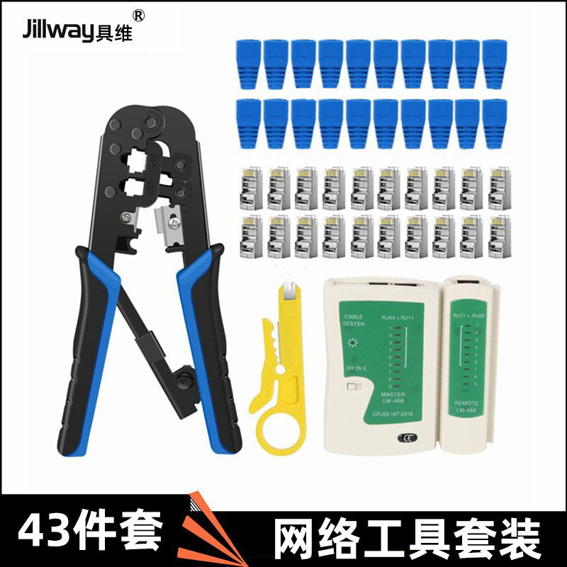 Peralatan Jaringan setelan Super lima enam kepala kristal RJ45 crimping 8P6P alat penguji kabel jaringan 43 set buah