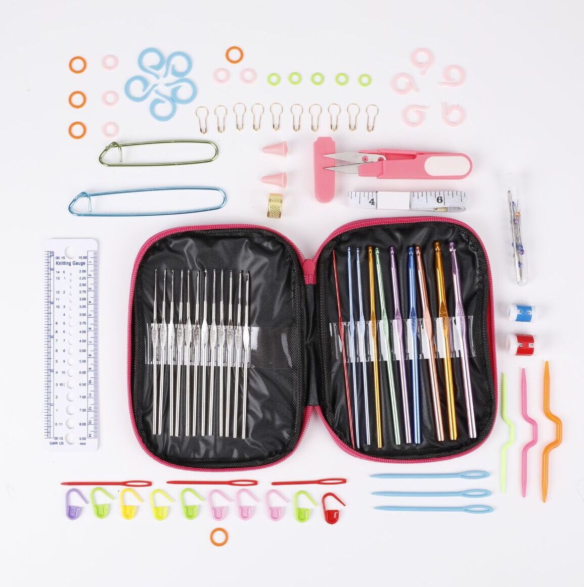 Setelan crochet logam baru paket kombinasi warna alumina wol crochet multi-piece alat rajut 100-piece set