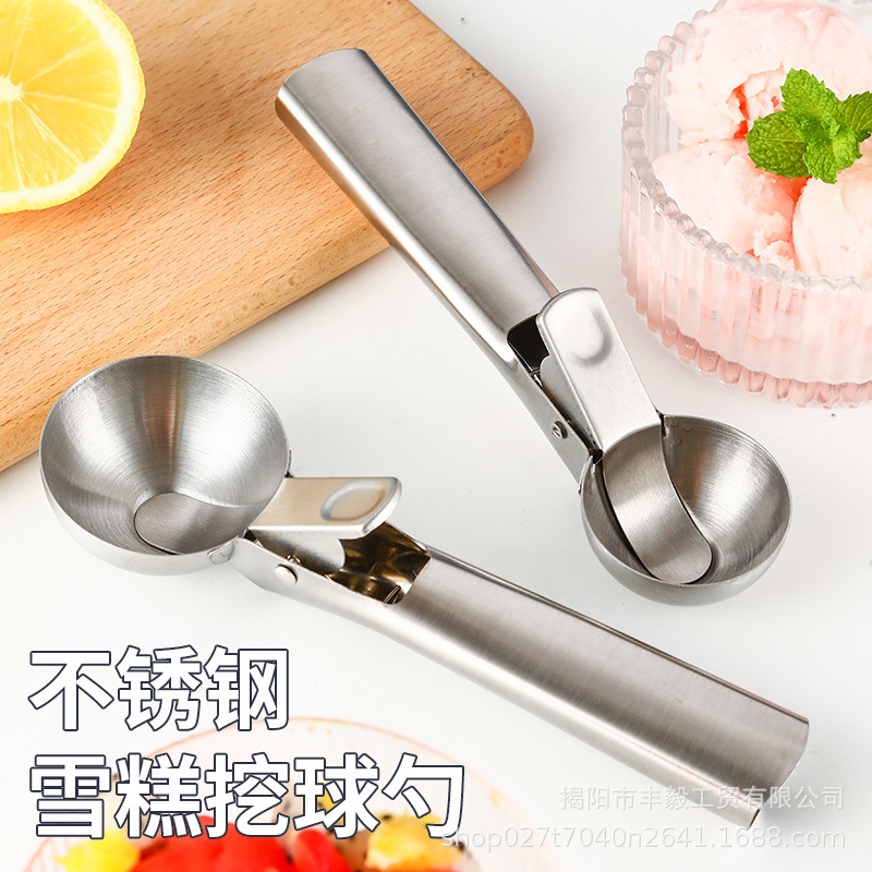Sendok es krim Stainless steel, sendok penggali es krim rumah tangga komersial buah semangka es krim susu panas bola harta karun