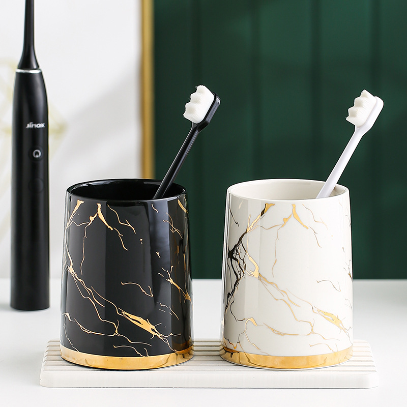 Cangkir pencuci mulut marmer mewah ringan Nordic cangkir cuci mulut keramik kelas tinggi Pasangan setelan cangkir sikat gigi perdagangan luar negeri grosir