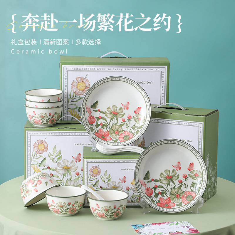 Peralatan makan pernikahan, setelan piring bunga retro Prancis, piring rumah tangga, kotak hadiah ulang tahun, hadiah pernikahan