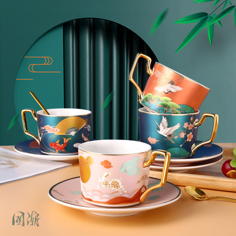 Nasional fashion keramik cangkir kopi gaya Eropa kecil mewah cangkir kopi dan piring setelan indah rumah tangga sore teh bunga cangkir sendok teh