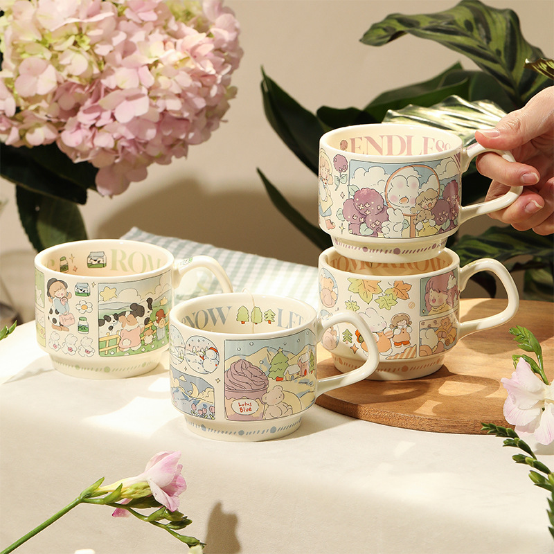 Setelan cangkir tumpuk, cangkir minum rumah tangga, cangkir keramik gadis dengan pegangan rasa desain terlihat tinggi