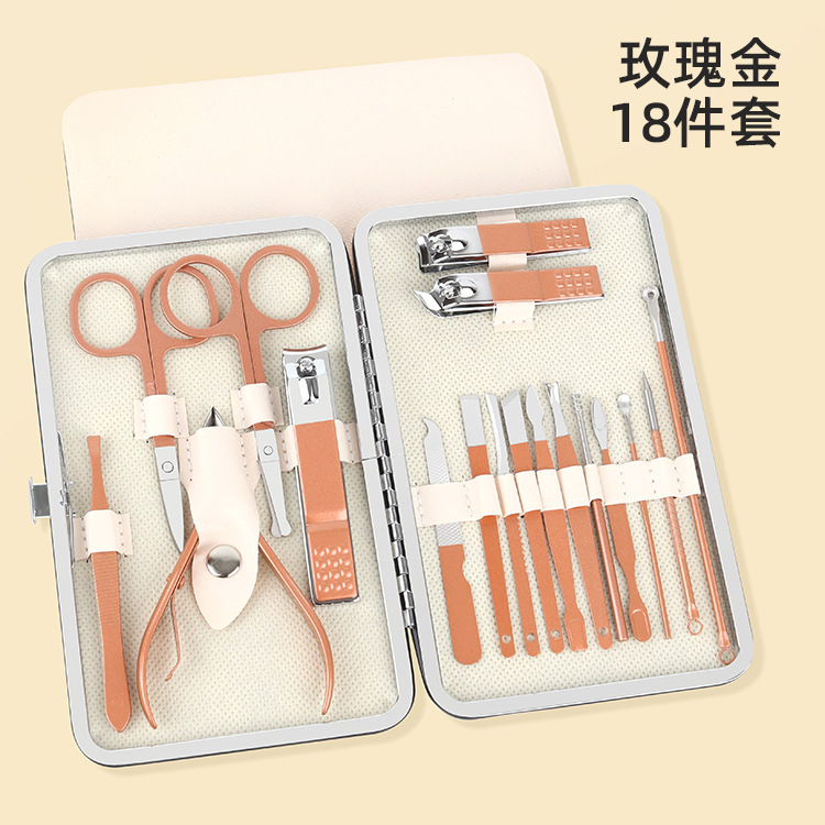 Set alat cukur kuku, setelan manikur, pedikur, set alat pemotong kuku rumah tangga emas mawar tajam 15 buah